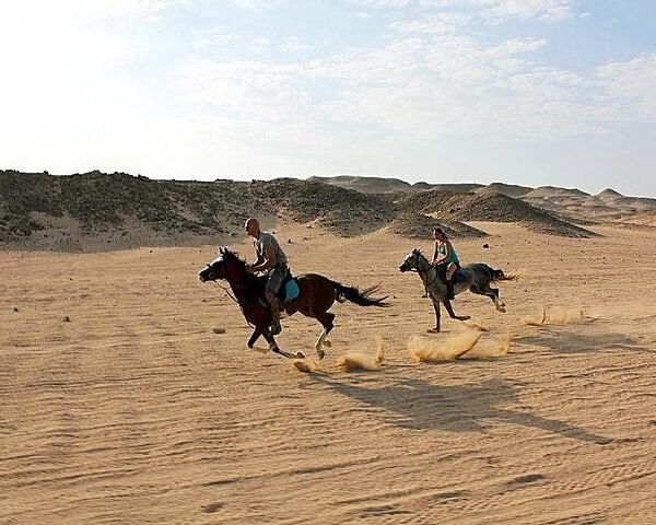 Experience the beauty of the desert around Hurghada with this 1-hour guided horse riding adventure. Enjoy a peaceful ride through scenic desert landscapes with a professional instructor, while all safety equipment including helmets is provided. Refresh with water, coffee, or tea after the ride.