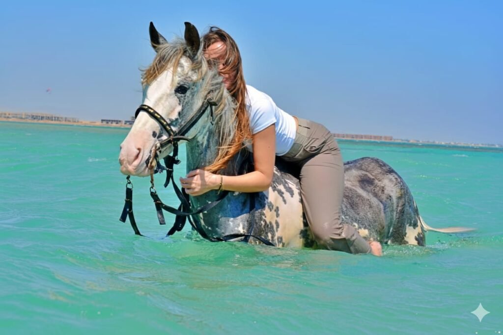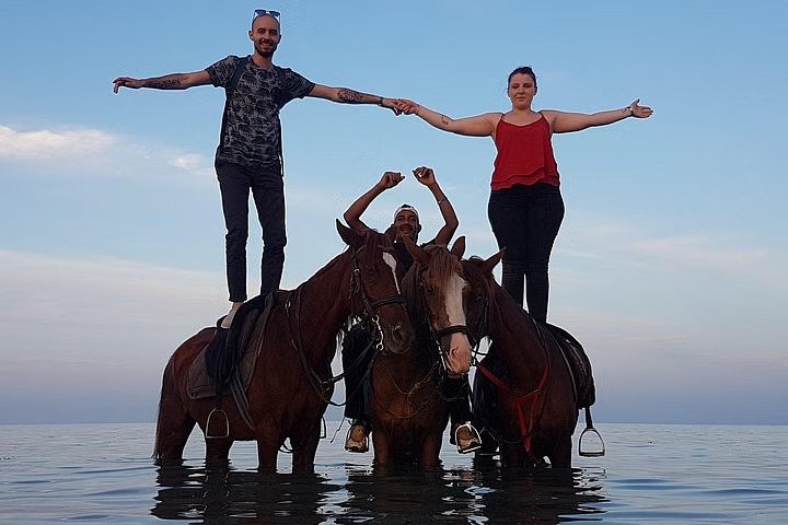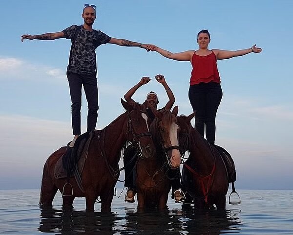 Experience the thrill of riding a horse along the Red Sea coast and enjoy a unique opportunity to swim with horses in the shallow turquoise waters. This 1-hour adventure is perfect for beginners and experienced riders alike, offering stunning coastal views, refreshing water fun, and an unforgettable way to connect with these beautiful animals.
