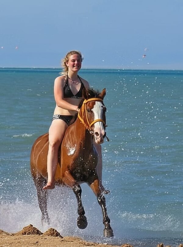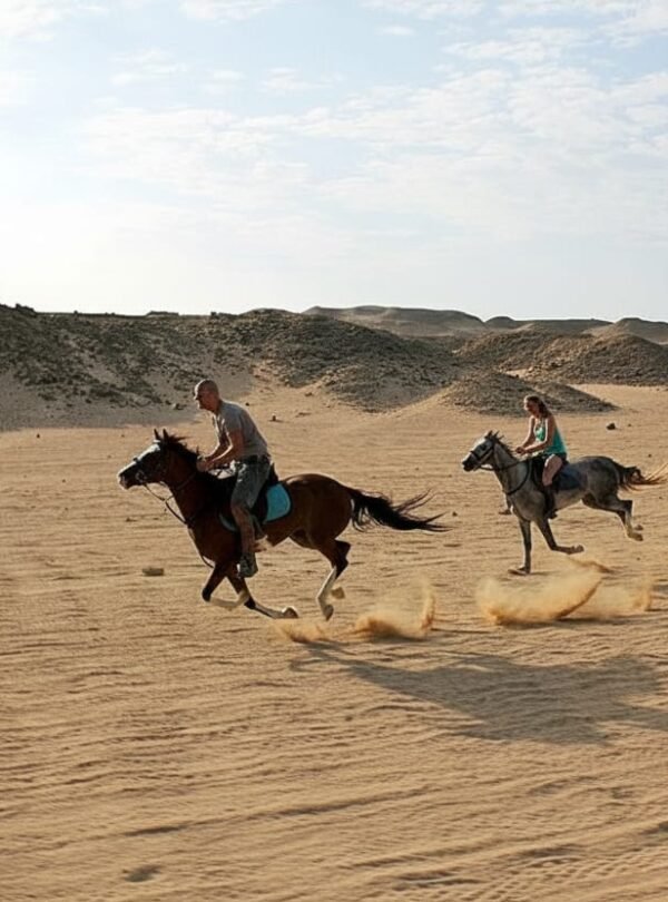 Enjoy an unforgettable 2-hour horse riding experience in Hurghada, combining desert landscapes and the Red Sea coastline. The tour starts with hotel pickup and a visit to our stables to meet your well-trained horse and professional guide, suitable for beginners and experienced riders. Ride through golden desert dunes, then continue along the Red Sea beach, enjoying fresh sea breeze and stunning views from horseback. Our guides ensure your safety and help you take memorable photos. Choose a morning ride or a magical sunset experience and make your Hurghada vacation truly special.