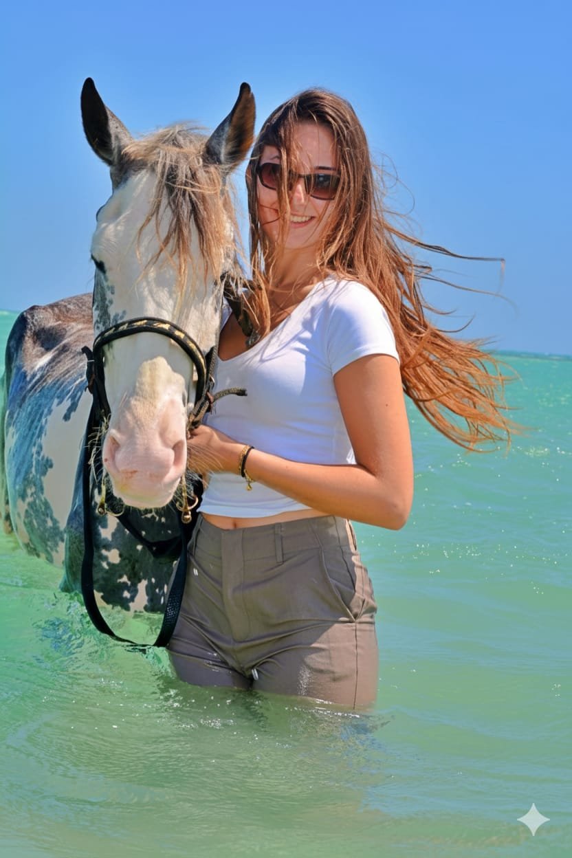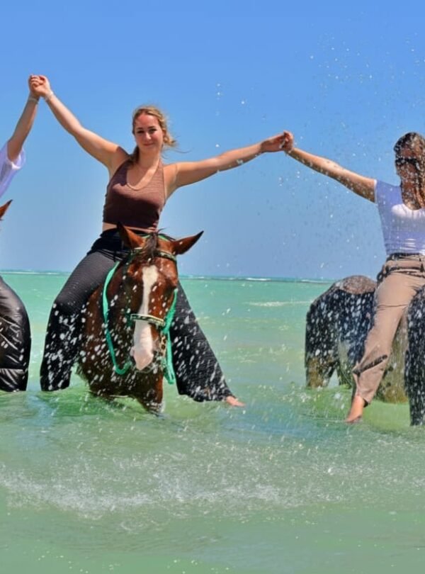 This 3-hour tour is designed for both beginners and experienced riders, offering breathtaking views, unique photo opportunities, and a safe, guided experience. Ride freely across the desert, feel the breeze along the shoreline, and enjoy a magical moment swimming with your horse in shallow turquoise waters.