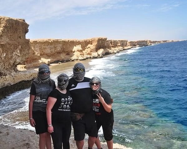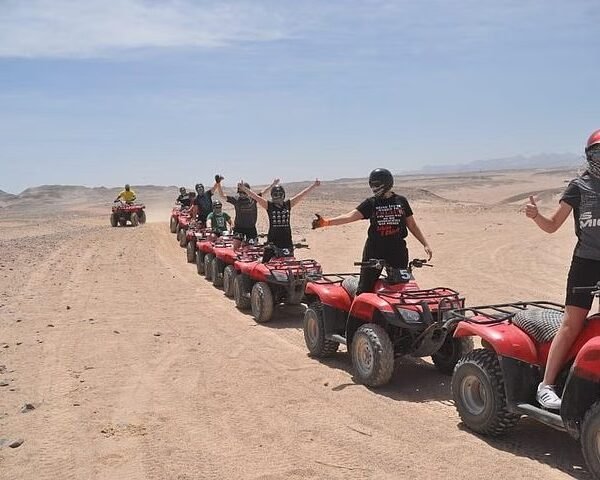Explore the desert and sea of Hurghada with this 3-hour adventure in Makadi Bay. Enjoy a thrilling quad bike ride through the desert to the Sea Caves, followed by a camel ride. Relax with traditional Bedouin tea and water, and take in the stunning natural scenery along the way.