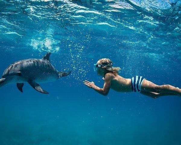 Enjoy an unforgettable 5-minute swimming experience with dolphins in Hurghada.